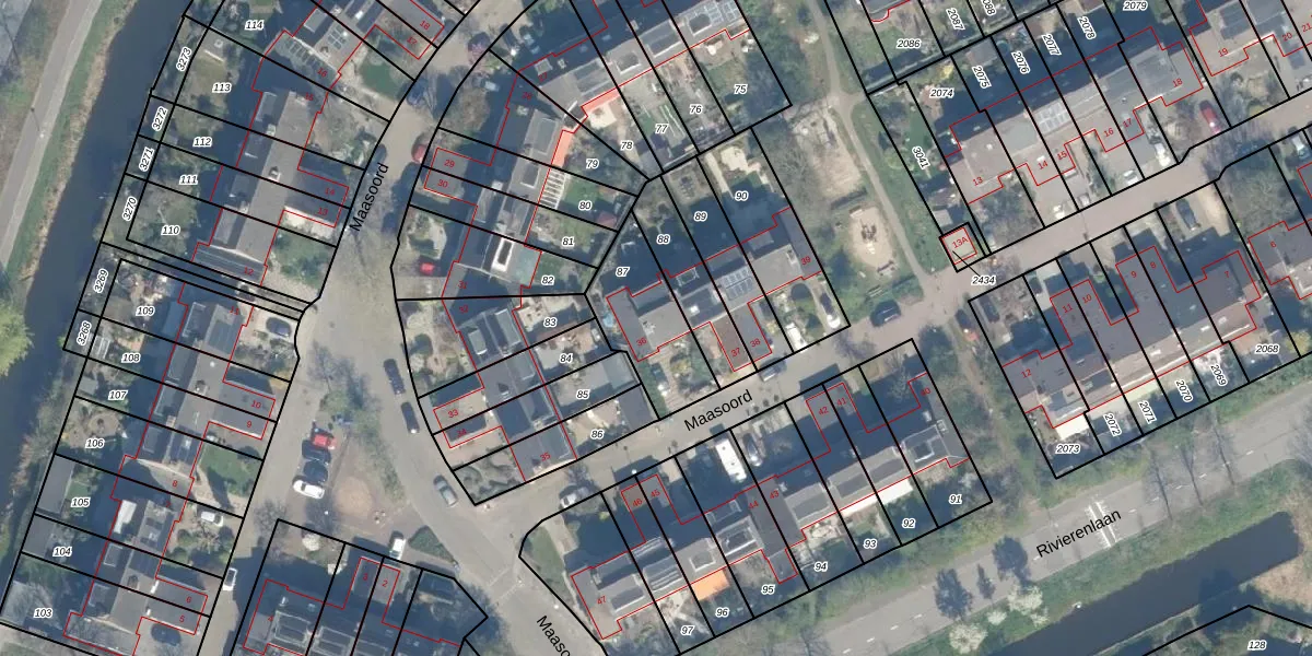 Het perceel waarop Maasoord 36 staat heeft een oppervlakte van 300 m². Dit is een groot perceel. De perceeloppervlakte wordt geregistreerd door het Kadaster. Gedetailleerde informatie over de maten van dit perceel kunt u vinden in het rapport Kadastrale kaart met maatvoering van Maasoord 36.