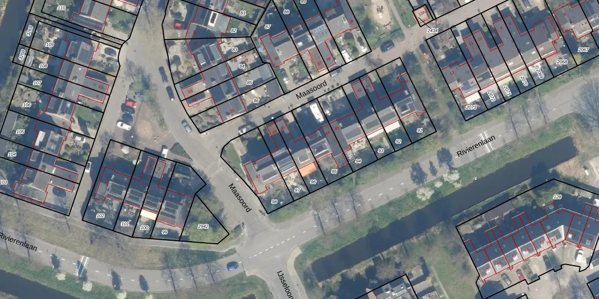 Het perceel waarop Maasoord 45 staat heeft een oppervlakte van 172 m². Dit is een middelgroot perceel. De perceeloppervlakte wordt geregistreerd door het Kadaster. Gedetailleerde informatie over de maten van dit perceel kunt u vinden in het rapport Kadastrale kaart met maatvoering van Maasoord 45.