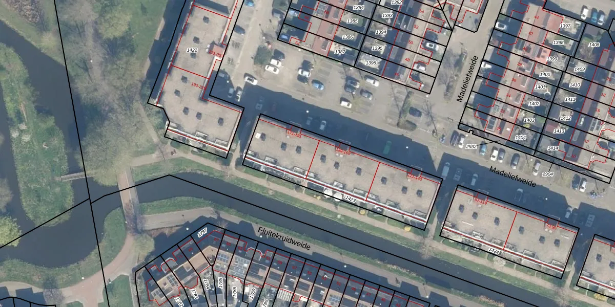 Madeliefweide 175 is gelegen op kadastraal perceel WDN01D1423. Deze kadastrale aanduiding is uniek en wordt gebruikt door het Kadaster om eigendomsrechten en andere zakelijke rechten vast te leggen. Het perceel maakt onderdeel uit van de kadastrale gemeente Woerden.