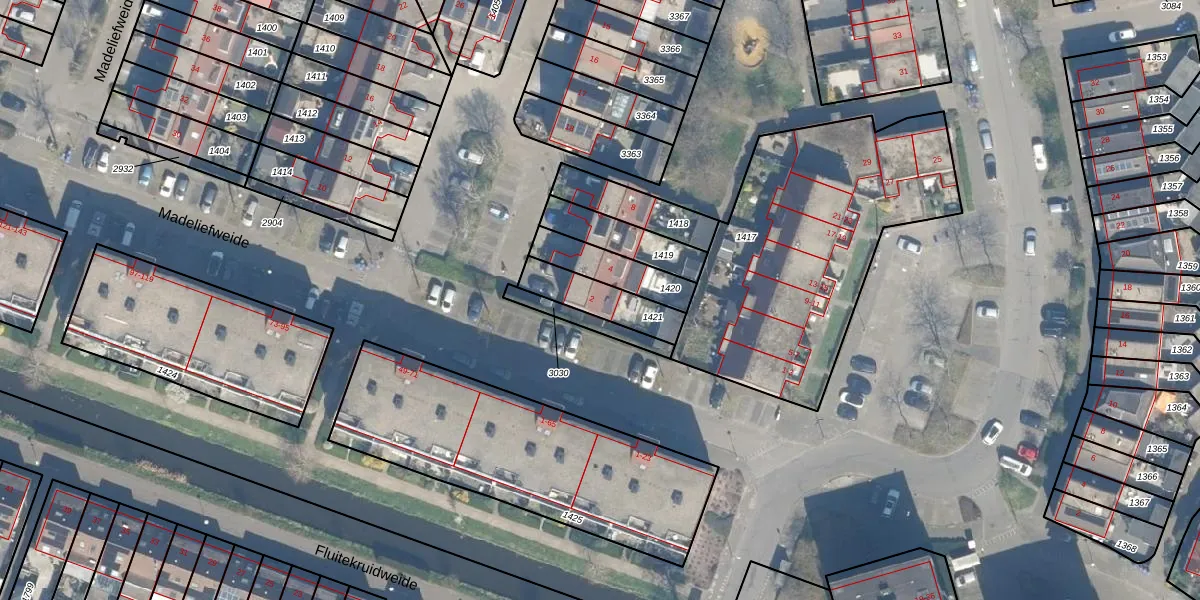 Madeliefweide 2 is gelegen op kadastraal perceel WDN01D1421. Deze kadastrale aanduiding is uniek en wordt gebruikt door het Kadaster om eigendomsrechten en andere zakelijke rechten vast te leggen. Het perceel maakt onderdeel uit van de kadastrale gemeente Woerden.