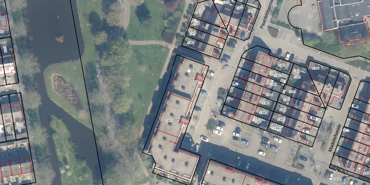 Madeliefweide 261 is gelegen op kadastraal perceel WDN01D1422. Deze kadastrale aanduiding is uniek en wordt gebruikt door het Kadaster om eigendomsrechten en andere zakelijke rechten vast te leggen. Het perceel maakt onderdeel uit van de kadastrale gemeente Woerden.