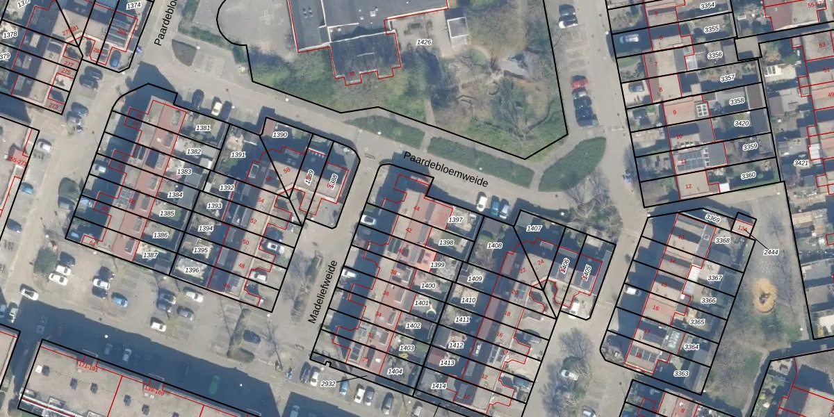 Madeliefweide 44 is gelegen op kadastraal perceel WDN01D1397. Deze kadastrale aanduiding is uniek en wordt gebruikt door het Kadaster om eigendomsrechten en andere zakelijke rechten vast te leggen. Het perceel maakt onderdeel uit van de kadastrale gemeente Woerden.