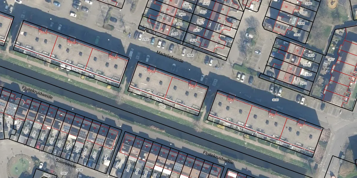 Madeliefweide 83 is gelegen op kadastraal perceel WDN01D1424. Deze kadastrale aanduiding is uniek en wordt gebruikt door het Kadaster om eigendomsrechten en andere zakelijke rechten vast te leggen. Het perceel maakt onderdeel uit van de kadastrale gemeente Woerden.
