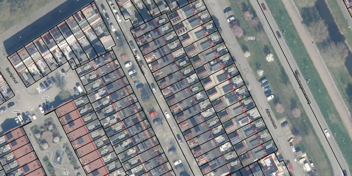Gebruik de zoekbalk of klik op een perceel voor informatie over de adressen binnen dit perceel.
