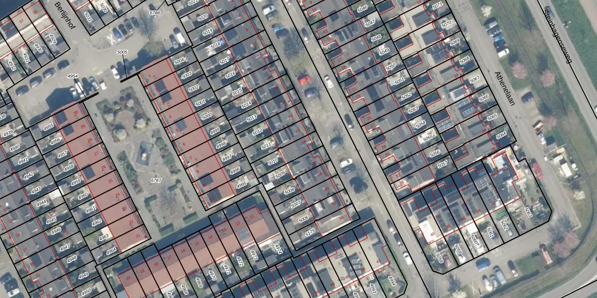 Gebruik de zoekbalk of klik op een perceel voor informatie over de adressen binnen dit perceel.