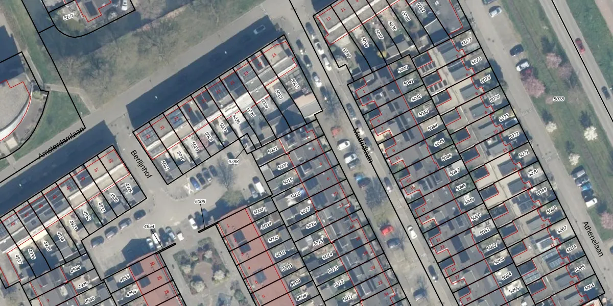 Madridlaan 4 is gelegen op kadastraal perceel WDN01A5020. Deze kadastrale aanduiding is uniek en wordt gebruikt door het Kadaster om eigendomsrechten en andere zakelijke rechten vast te leggen. Het perceel maakt onderdeel uit van de kadastrale gemeente Woerden.