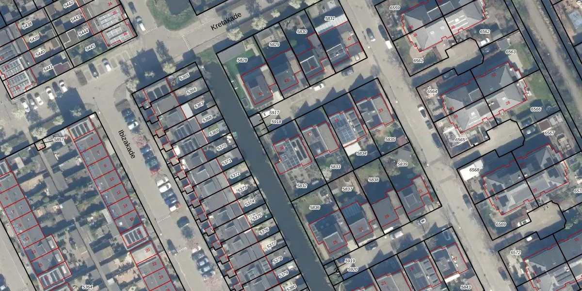 Gebruik de zoekbalk of klik op een perceel voor informatie over de adressen binnen dit perceel.