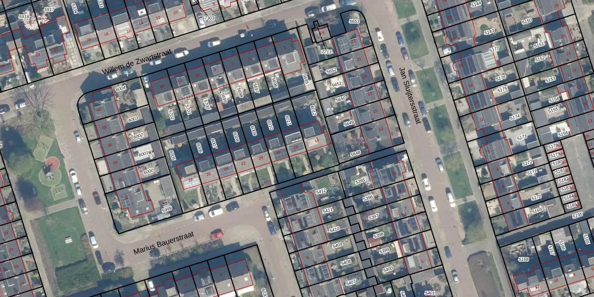 Marius Bauerstraat 16 is gelegen op kadastraal perceel WDN01B6011. Deze kadastrale aanduiding is uniek en wordt gebruikt door het Kadaster om eigendomsrechten en andere zakelijke rechten vast te leggen. Het perceel maakt onderdeel uit van de kadastrale gemeente Woerden.