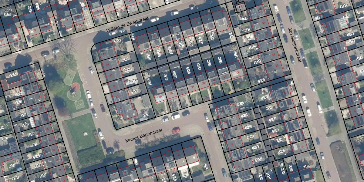 Gebruik de zoekbalk of klik op een perceel voor informatie over de adressen binnen dit perceel.