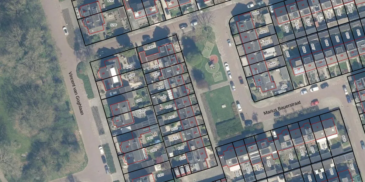 Gebruik de zoekbalk of klik op een perceel voor informatie over de adressen binnen dit perceel.