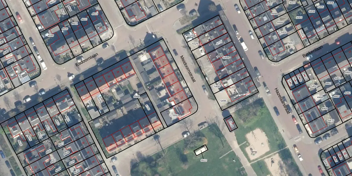 Meidoornstraat 10 is gelegen op kadastraal perceel WDN01B9488. Deze kadastrale aanduiding is uniek en wordt gebruikt door het Kadaster om eigendomsrechten en andere zakelijke rechten vast te leggen. Het perceel maakt onderdeel uit van de kadastrale gemeente Woerden.