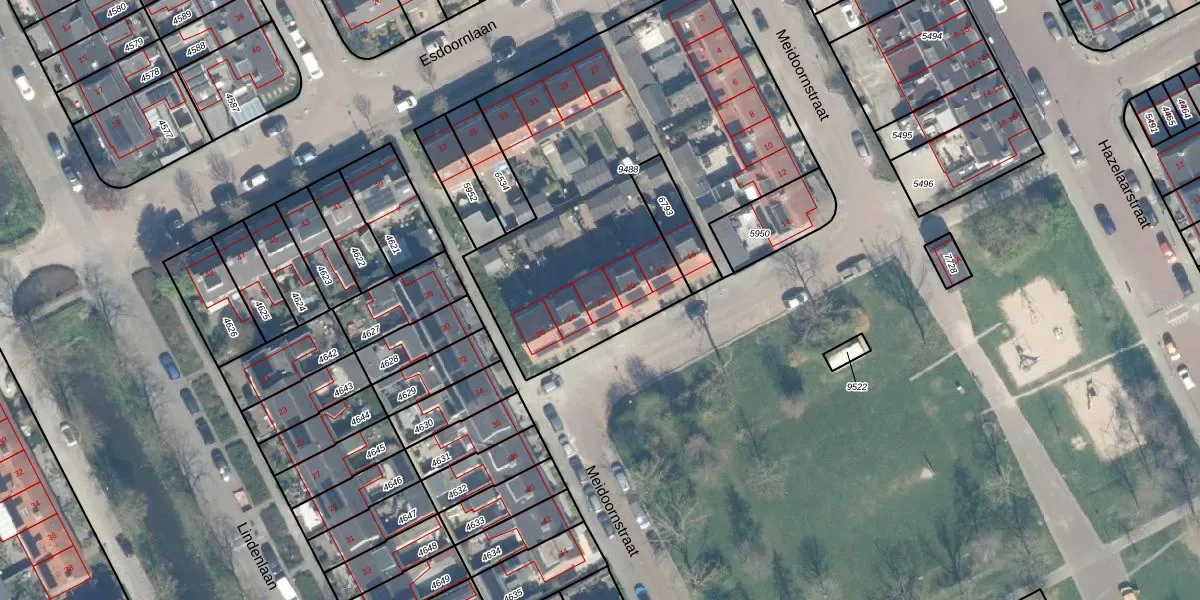 Meidoornstraat 22 is gelegen op kadastraal perceel WDN01B9488. Deze kadastrale aanduiding is uniek en wordt gebruikt door het Kadaster om eigendomsrechten en andere zakelijke rechten vast te leggen. Het perceel maakt onderdeel uit van de kadastrale gemeente Woerden.