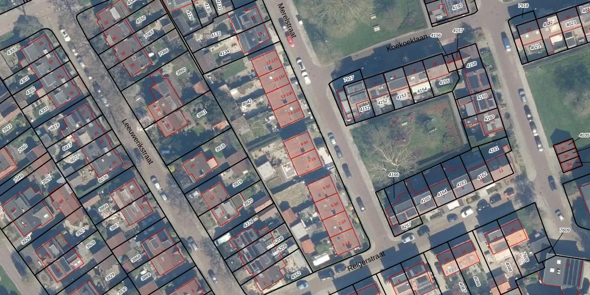Het perceel waarop Merelstraat 9-I staat heeft een oppervlakte van 1870 m². Dit is een zeer groot perceel. De perceeloppervlakte wordt geregistreerd door het Kadaster. Gedetailleerde informatie over de maten van dit perceel kunt u vinden in het rapport Kadastrale kaart met maatvoering van Merelstraat 9-I.