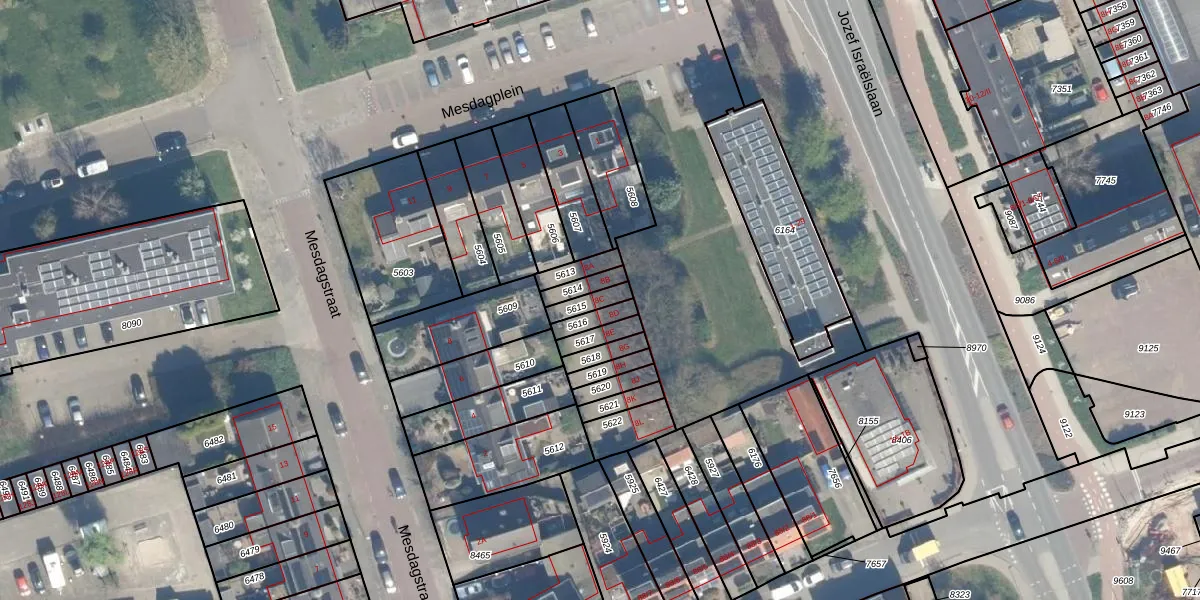 Het perceel waarop Mesdagstraat 8-C staat heeft een oppervlakte van 42 m². Dit is een klein perceel. De perceeloppervlakte wordt geregistreerd door het Kadaster. Gedetailleerde informatie over de maten van dit perceel kunt u vinden in het rapport Kadastrale kaart met maatvoering van Mesdagstraat 8-C.