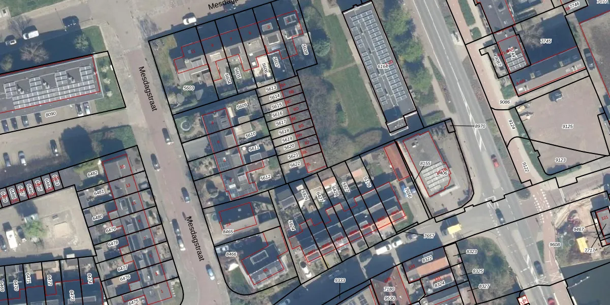 Het perceel waarop Mesdagstraat 8-K staat heeft een oppervlakte van 42 m². Dit is een klein perceel. De perceeloppervlakte wordt geregistreerd door het Kadaster. Gedetailleerde informatie over de maten van dit perceel kunt u vinden in het rapport Kadastrale kaart met maatvoering van Mesdagstraat 8-K.