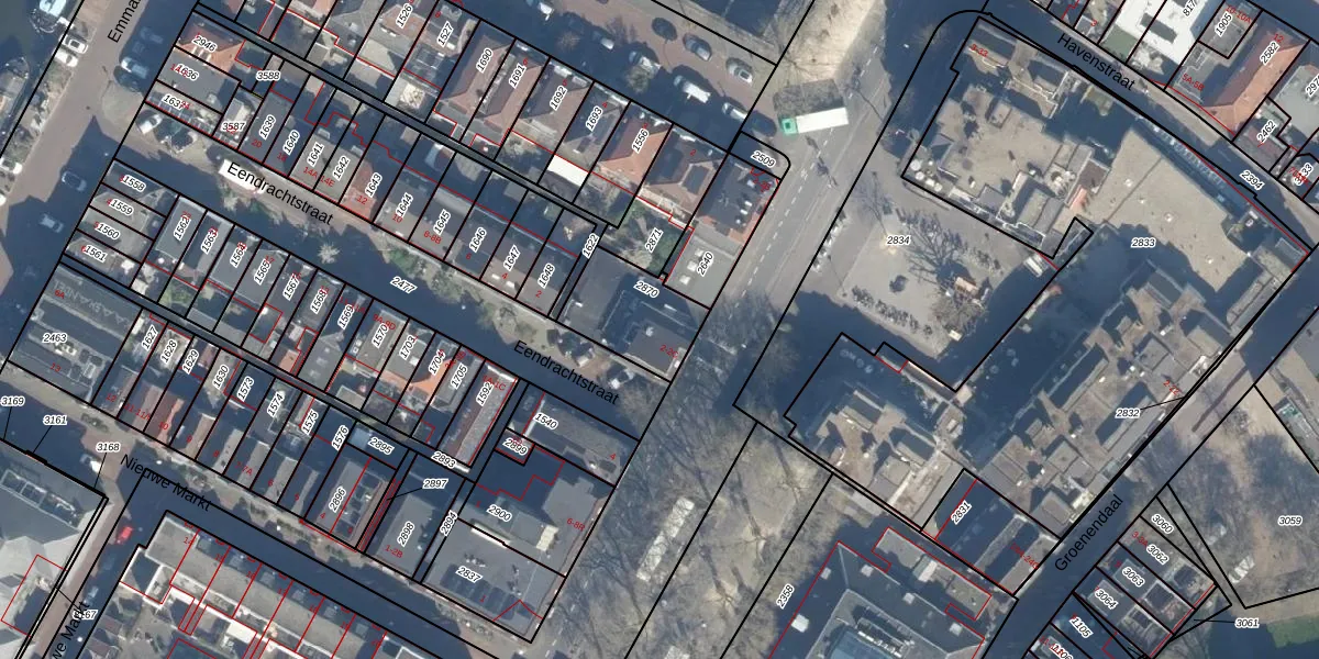 Het adres is gelegen op perceel 2870 in de sectie C en de kadastrale gemeente Woerden. De kadastrale aanduiding is aldus WDN01-C-2870. De gemiddelde perceelgrootte in Woerden is 1326,34 m². Dit perceel is kleiner: de perceeloppervlakte bedraagt 259 m². De grootste perceeloppervlakte in de kadastrale gemeente is 55,0 ha. De kleinste oppervlakte bedraagt 0 m². Op het perceel liggen in totaal 3 adressen. In de Basisregistratie Kadaster (BRK) werden de grenzen van het perceel geregistreerd op 15-12-2004.