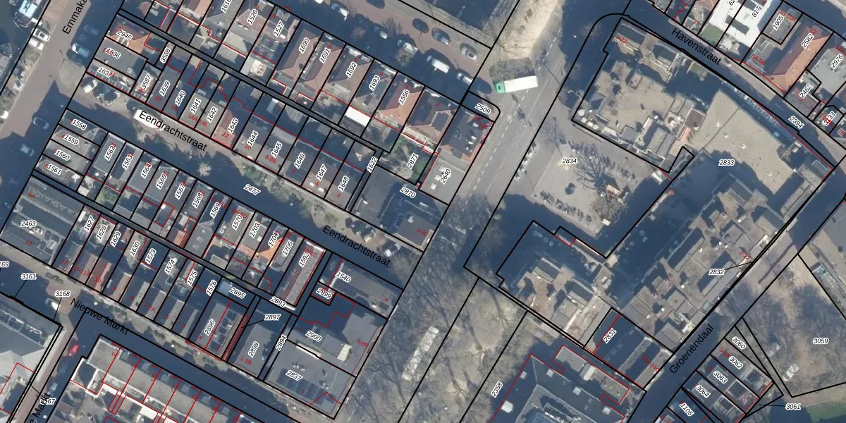 Het adres is gelegen op perceel 2870 in de sectie C en de kadastrale gemeente Woerden. De kadastrale aanduiding is aldus WDN01-C-2870. Het perceel is 259 m² groot. Dat is kleiner dan de gemiddelde perceeloppervlakte in Woerden, dat op 1325,89 m² ligt. Het kleinste perceel in de kadastrale gemeente is 0 m² groot. De grootste perceeloppervlakte is 55,0 ha. Op het perceel zijn 3 adressen aanwezig. De huidige grenzen van het perceel zijn digitaal in de Basisregistratie Kadaster (BRK) geregistreerd op 15-12-2004.