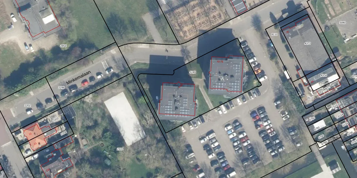 Minkemalaan 12 is gelegen op kadastraal perceel WDN01A5149. Deze kadastrale aanduiding is uniek en wordt gebruikt door het Kadaster om eigendomsrechten en andere zakelijke rechten vast te leggen. Het perceel maakt onderdeel uit van de kadastrale gemeente Woerden.