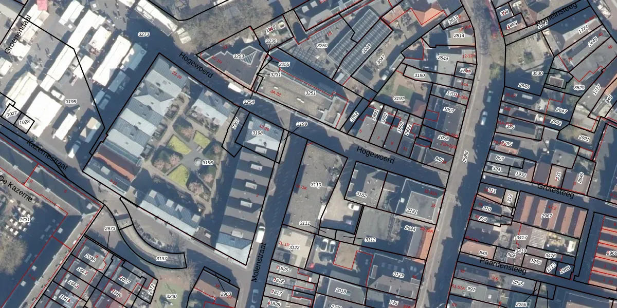 Molenstraat 1-A is gelegen op kadastraal perceel WDN01C3110. Deze kadastrale aanduiding is uniek en wordt gebruikt door het Kadaster om eigendomsrechten en andere zakelijke rechten vast te leggen. Het perceel maakt onderdeel uit van de kadastrale gemeente Woerden.