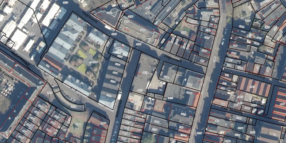 Molenstraat 1-G is gelegen op kadastraal perceel WDN01C3110. Deze kadastrale aanduiding is uniek en wordt gebruikt door het Kadaster om eigendomsrechten en andere zakelijke rechten vast te leggen. Het perceel maakt onderdeel uit van de kadastrale gemeente Woerden.