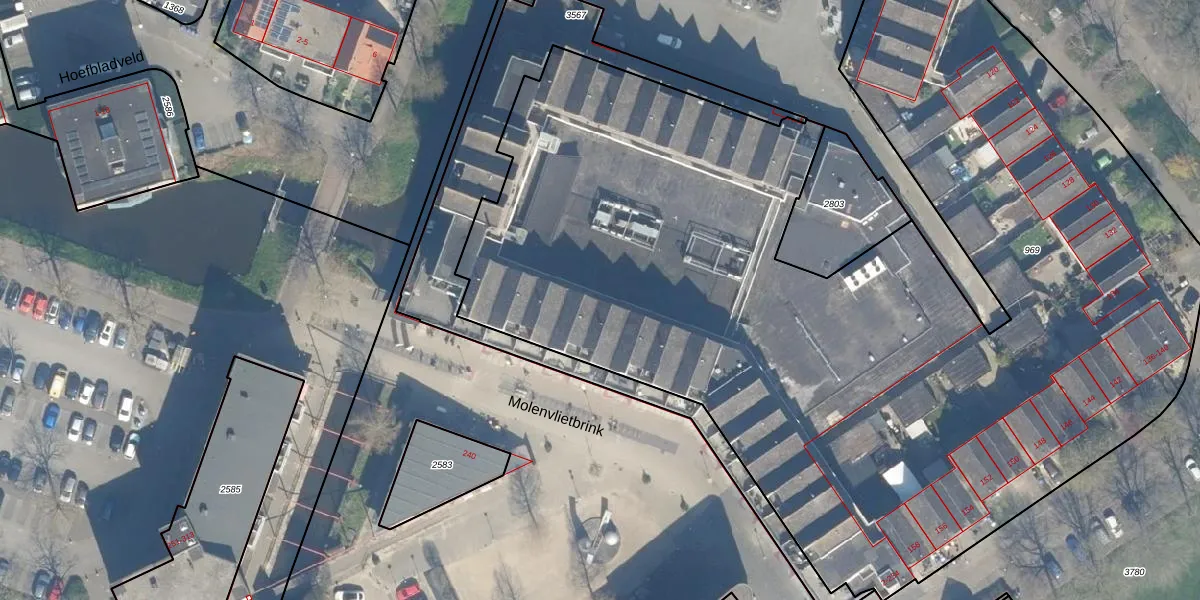 Het perceel waarop het adres ligt is WDN01-D-969. De afkorting 'WDN01' staat voor kadastrale gemeente Woerden. De oppervlakte van het perceel is 7397 m². Dat is groter dan gemiddeld in Woerden, waar de gemiddelde perceeloppervlakte op 1325,81 m² ligt. De grootste perceeloppervlakte in de kadastrale gemeente is 55,0 ha. De kleinste oppervlakte bedraagt 0 m². Er zijn 110 adressen aanwezig op het perceel. De laatste wijziging in het de Basisregistratie Kadaster (BRK) was op 23-03-2011.