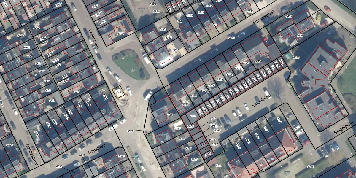 Gebruik de zoekbalk of klik op een perceel voor informatie over de adressen binnen dit perceel.