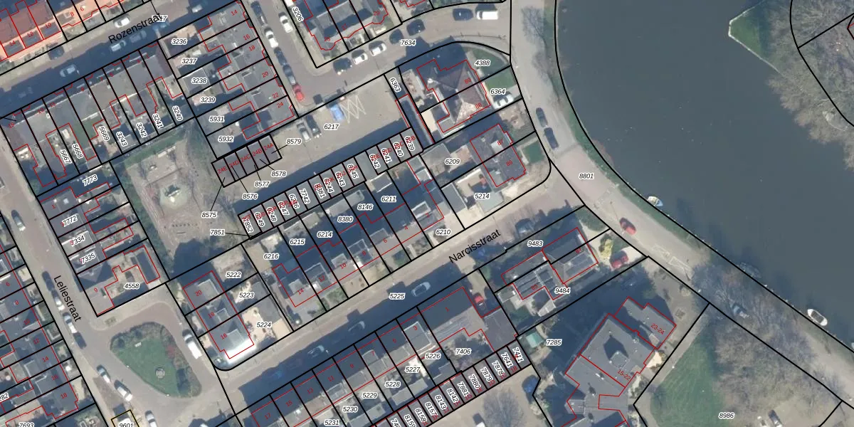 Gebruik de zoekbalk of klik op een perceel voor informatie over de adressen binnen dit perceel.