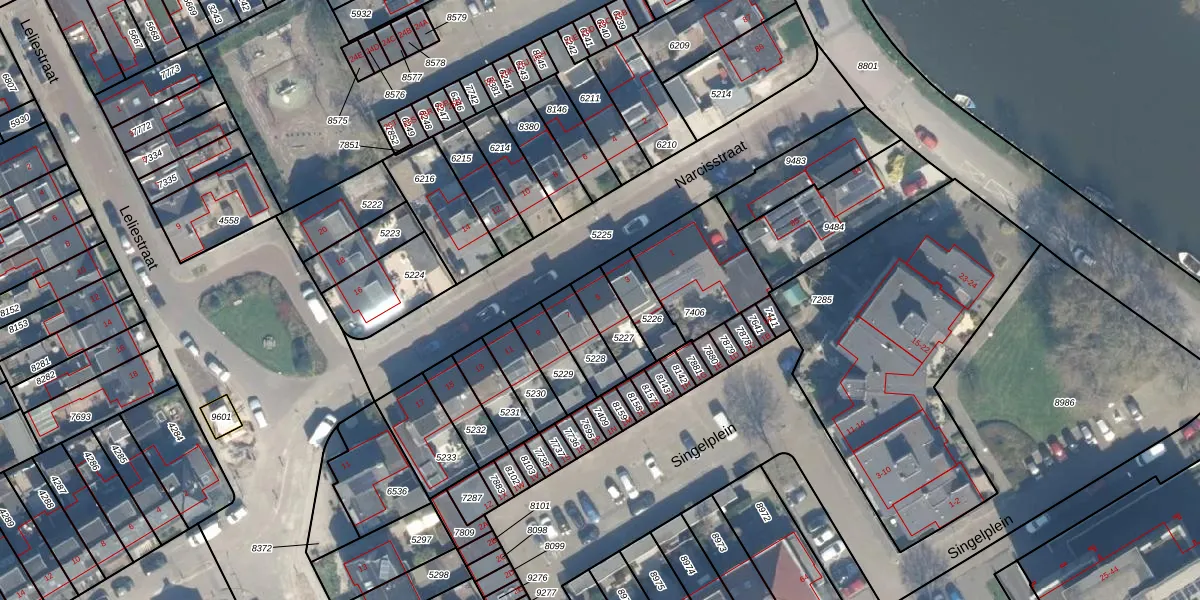 Gebruik de zoekbalk of klik op een perceel voor informatie over de adressen binnen dit perceel.