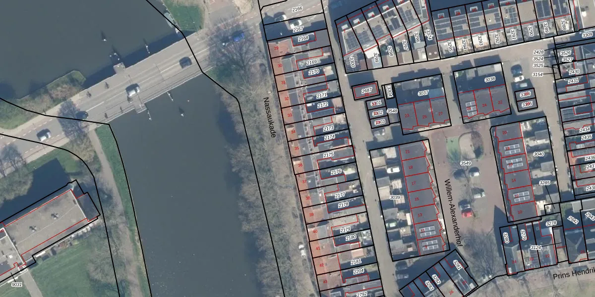 Nassaukade 35 is gelegen op kadastraal perceel WDN01C2174. Deze kadastrale aanduiding is uniek en wordt gebruikt door het Kadaster om eigendomsrechten en andere zakelijke rechten vast te leggen. Het perceel maakt onderdeel uit van de kadastrale gemeente Woerden.