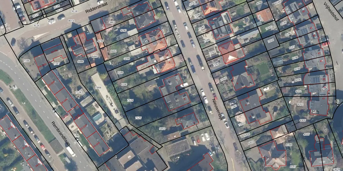 Gebruik de zoekbalk of klik op een perceel voor informatie over de adressen binnen dit perceel.
