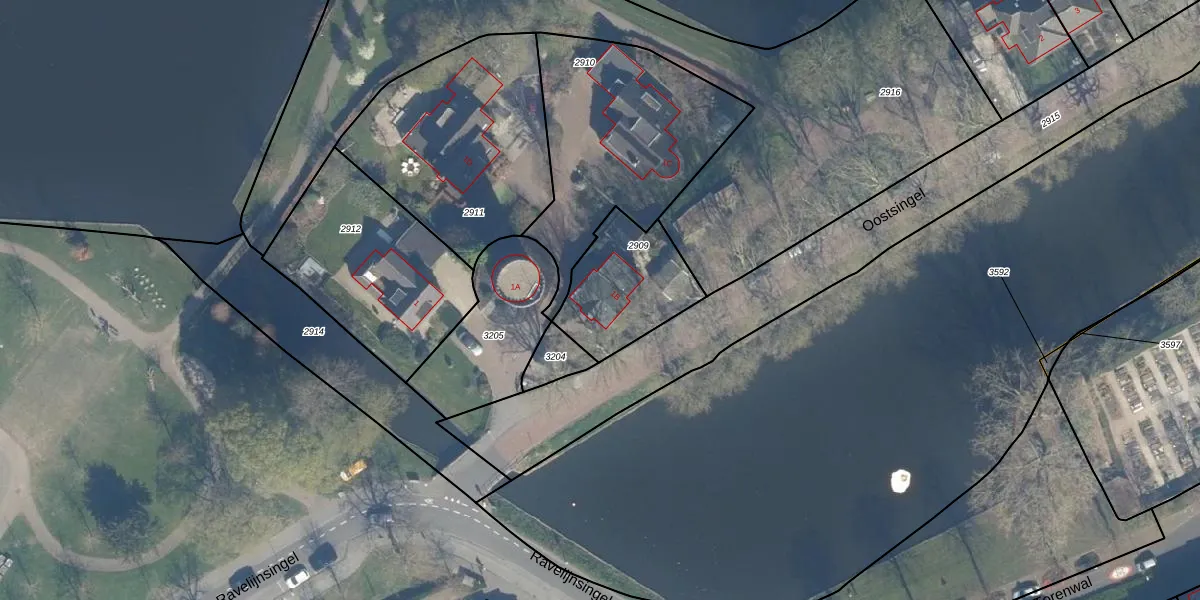 Oostsingel 1-B is gelegen op kadastraal perceel WDN01C2909. Deze kadastrale aanduiding is uniek en wordt gebruikt door het Kadaster om eigendomsrechten en andere zakelijke rechten vast te leggen. Het perceel maakt onderdeel uit van de kadastrale gemeente Woerden.