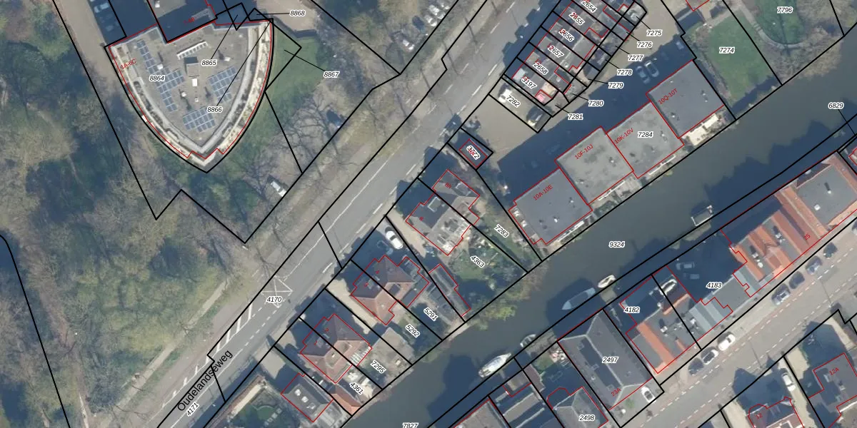 Oudelandseweg 8 is gelegen op kadastraal perceel WDN01B4363. Deze kadastrale aanduiding is uniek en wordt gebruikt door het Kadaster om eigendomsrechten en andere zakelijke rechten vast te leggen. Het perceel maakt onderdeel uit van de kadastrale gemeente Woerden.