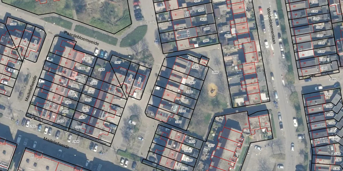 Gebruik de zoekbalk of klik op een perceel voor informatie over de adressen binnen dit perceel.