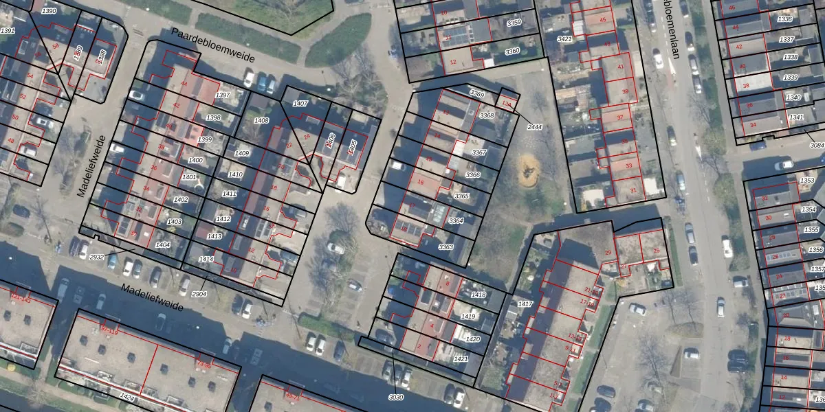 Gebruik de zoekbalk of klik op een perceel voor informatie over de adressen binnen dit perceel.