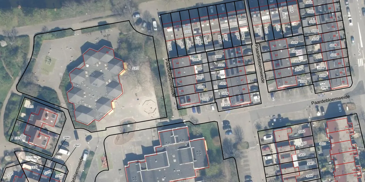 Het perceel waarop Paardebloemweide 41 staat heeft een oppervlakte van 107 m². Dit is een middelgroot perceel. De perceeloppervlakte wordt geregistreerd door het Kadaster. Gedetailleerde informatie over de maten van dit perceel kunt u vinden in het rapport Kadastrale kaart met maatvoering van Paardebloemweide 41.