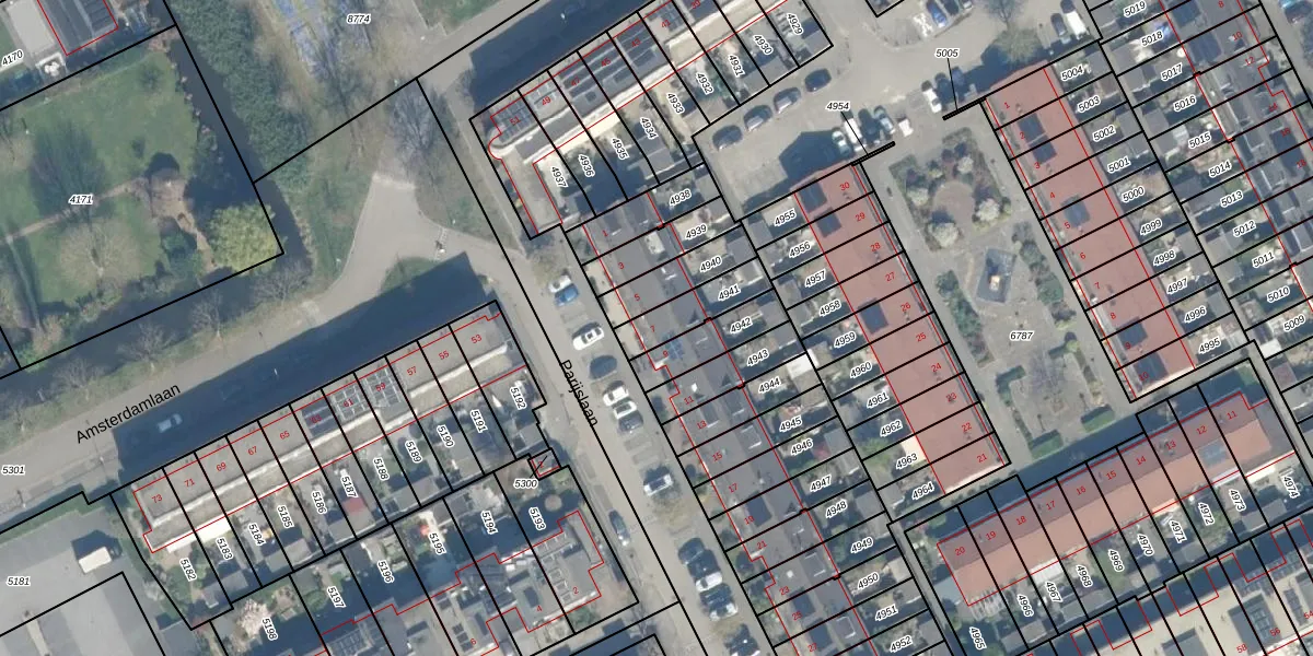 Gebruik de zoekbalk of klik op een perceel voor informatie over de adressen binnen dit perceel.