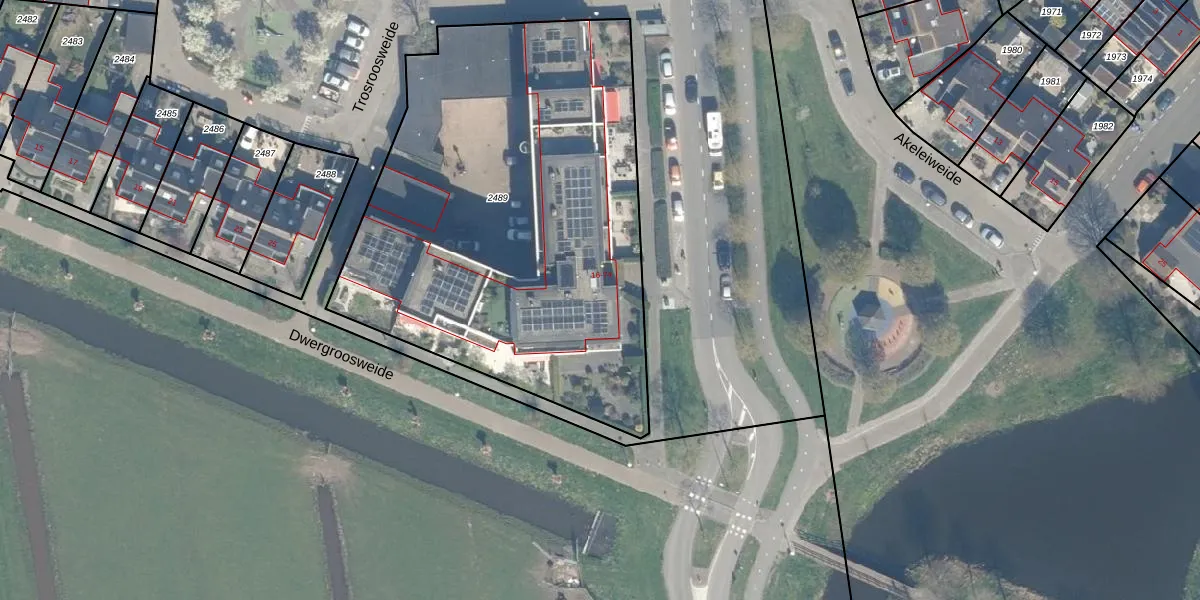 Het perceel waarop het adres ligt is WDN01-D-2489. De afkorting 'WDN01' staat voor kadastrale gemeente Woerden. Het perceel is met 2615 m² relatief groot. Het gemiddelde ligt in de kadastrale gemeente Woerden op 1326,34 m². Het kleinste perceel in de kadastrale gemeente is 0 m² groot. De grootste perceeloppervlakte is 55,0 ha. Op het perceel liggen in totaal 30 adressen. De huidige grenzen van het perceel zijn digitaal in de Basisregistratie Kadaster (BRK) geregistreerd op 09-02-2000.