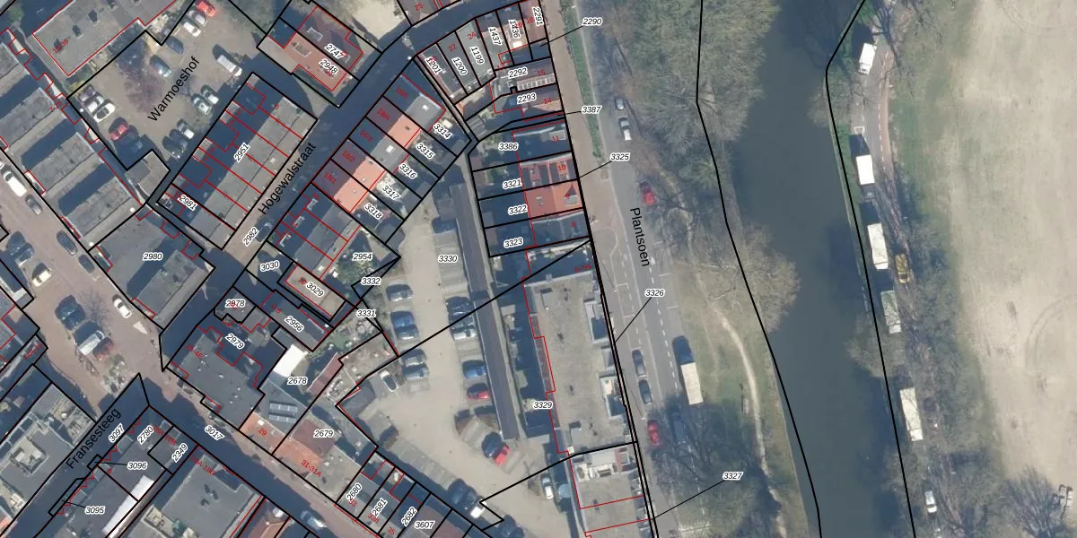 Plantsoen 7-42 is gelegen op kadastraal perceel WDN01C3330. Deze kadastrale aanduiding is uniek en wordt gebruikt door het Kadaster om eigendomsrechten en andere zakelijke rechten vast te leggen. Het perceel maakt onderdeel uit van de kadastrale gemeente Woerden.