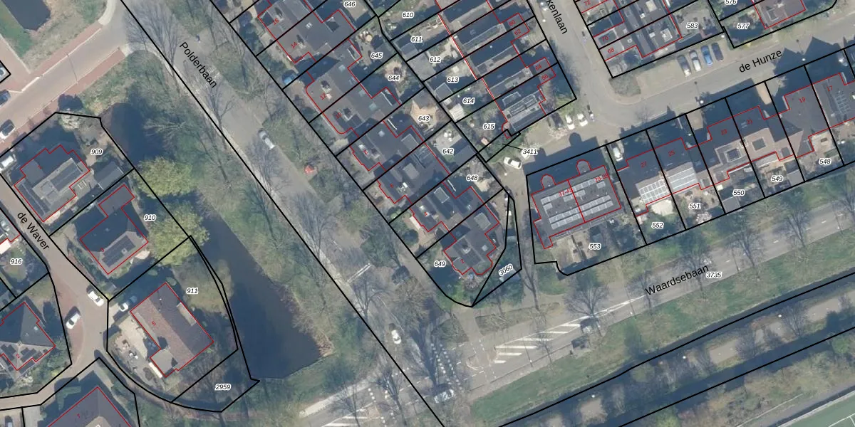 Gebruik de zoekbalk of klik op een perceel voor informatie over de adressen binnen dit perceel.