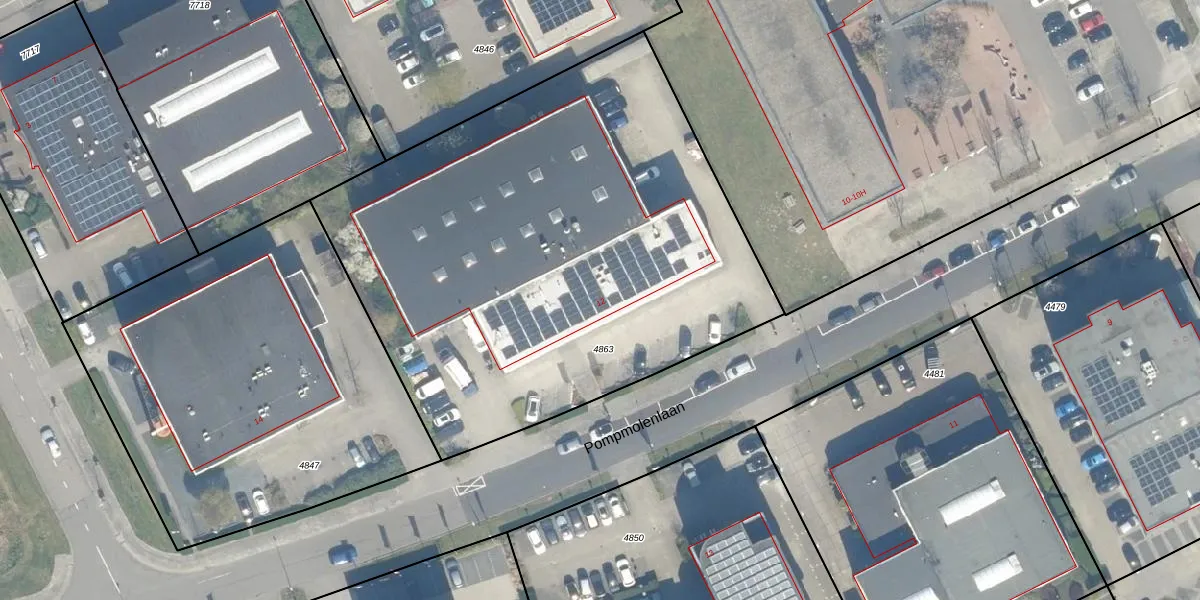 Pompmolenlaan 12 is gelegen op kadastraal perceel WDN01A4863. Deze kadastrale aanduiding is uniek en wordt gebruikt door het Kadaster om eigendomsrechten en andere zakelijke rechten vast te leggen. Het perceel maakt onderdeel uit van de kadastrale gemeente Woerden.