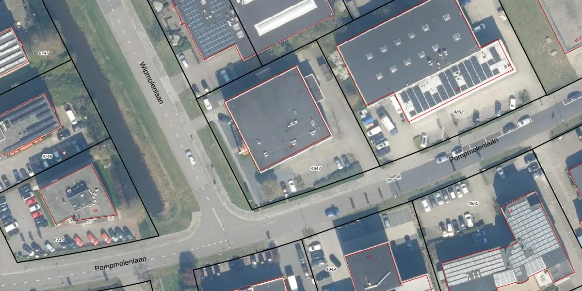Pompmolenlaan 14 is gelegen op kadastraal perceel WDN01A4847. Deze kadastrale aanduiding is uniek en wordt gebruikt door het Kadaster om eigendomsrechten en andere zakelijke rechten vast te leggen. Het perceel maakt onderdeel uit van de kadastrale gemeente Woerden.