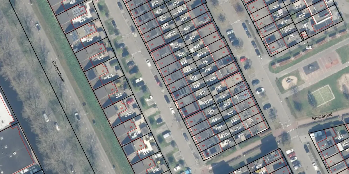 Het perceel waarop het adres ligt is WDN01-A-5514. De afkorting 'WDN01' staat voor kadastrale gemeente Woerden. Het perceel is 107 m² groot. Dat is kleiner dan de gemiddelde perceeloppervlakte in Woerden, dat op 1326,43 m² ligt. Het grootste perceel in de kadastrale gemeente is 55,0 ha. Het kleinste perceel heeft een oppervlakte van 0 m². Dit is het enige adres dat aanwezig is op het perceel. De huidige grenzen van het perceel zijn digitaal in de Basisregistratie Kadaster (BRK) geregistreerd op 18-12-2003.