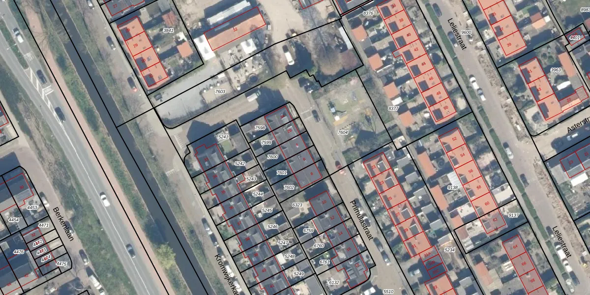 Gebruik de zoekbalk of klik op een perceel voor informatie over de adressen binnen dit perceel.