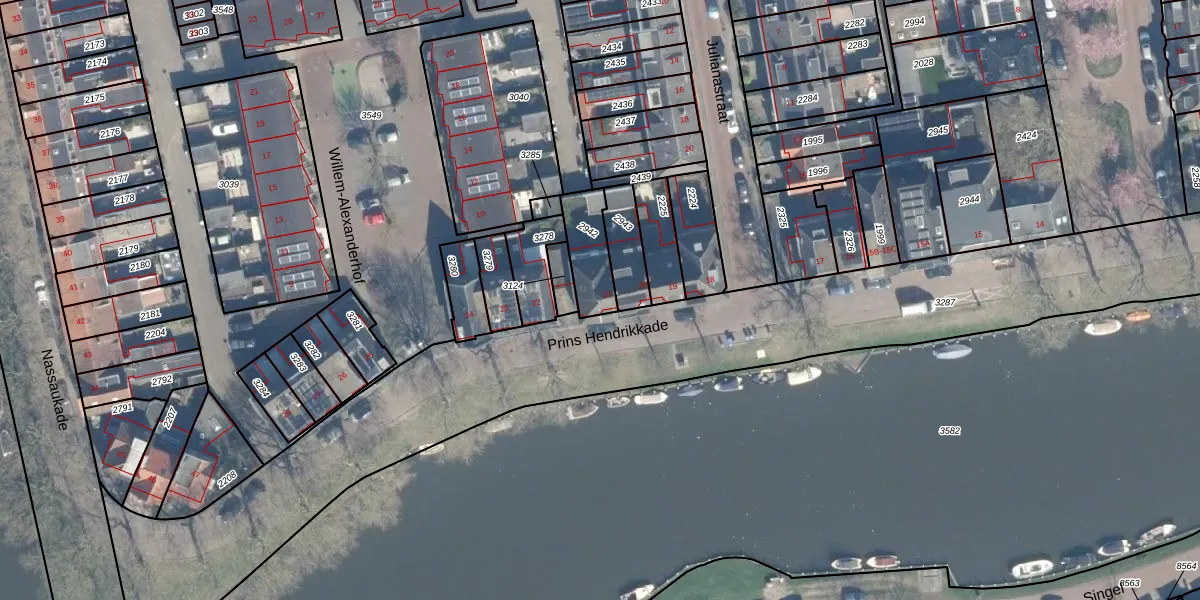 Gebruik de zoekbalk of klik op een perceel voor informatie over de adressen binnen dit perceel.