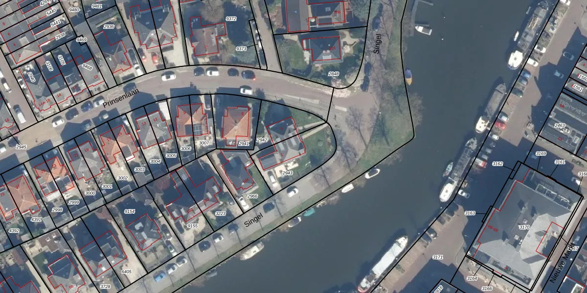 Het perceel waarop Prinsenlaan 1 staat heeft een oppervlakte van 385 m². Dit is een groot perceel. De perceeloppervlakte wordt geregistreerd door het Kadaster. Gedetailleerde informatie over de maten van dit perceel kunt u vinden in het rapport Kadastrale kaart met maatvoering van Prinsenlaan 1.
