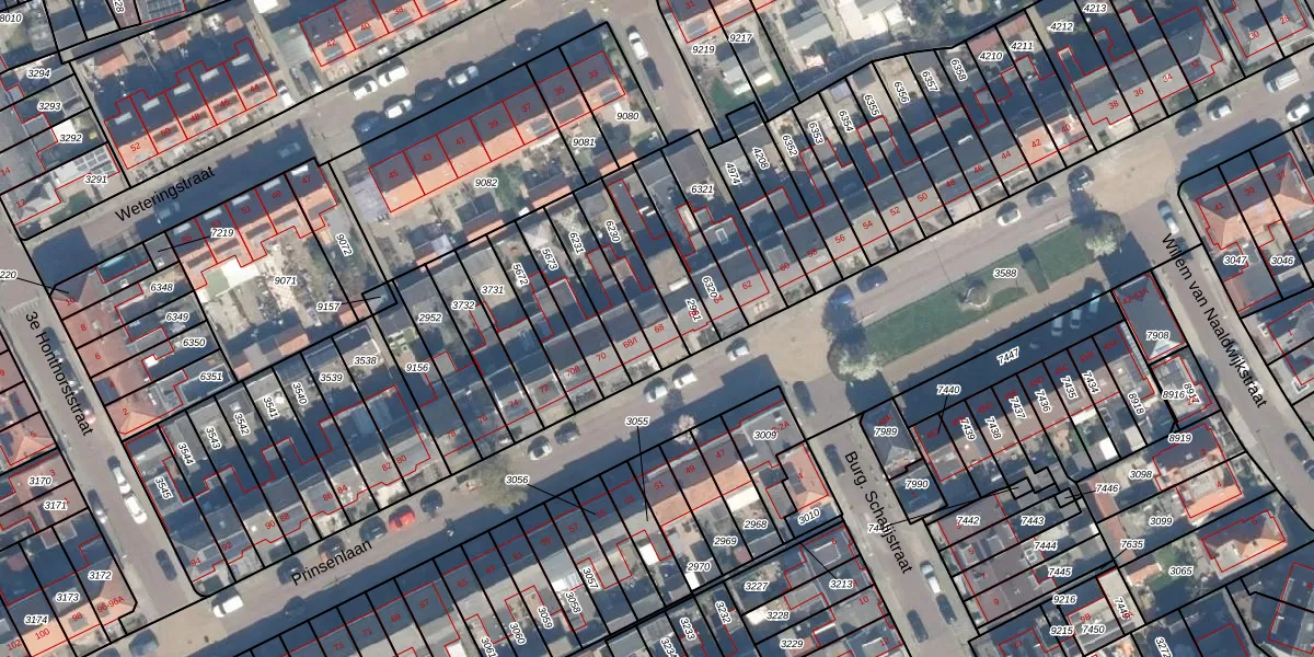Het perceel waarop Prinsenlaan 68 staat heeft een oppervlakte van 148 m². Dit is een middelgroot perceel. De perceeloppervlakte wordt geregistreerd door het Kadaster. Gedetailleerde informatie over de maten van dit perceel kunt u vinden in het rapport Kadastrale kaart met maatvoering van Prinsenlaan 68.