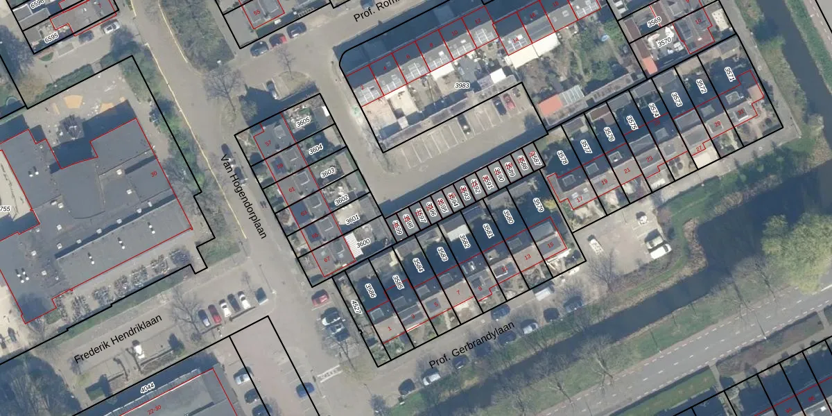 Gebruik de zoekbalk of klik op een perceel voor informatie over de adressen binnen dit perceel.