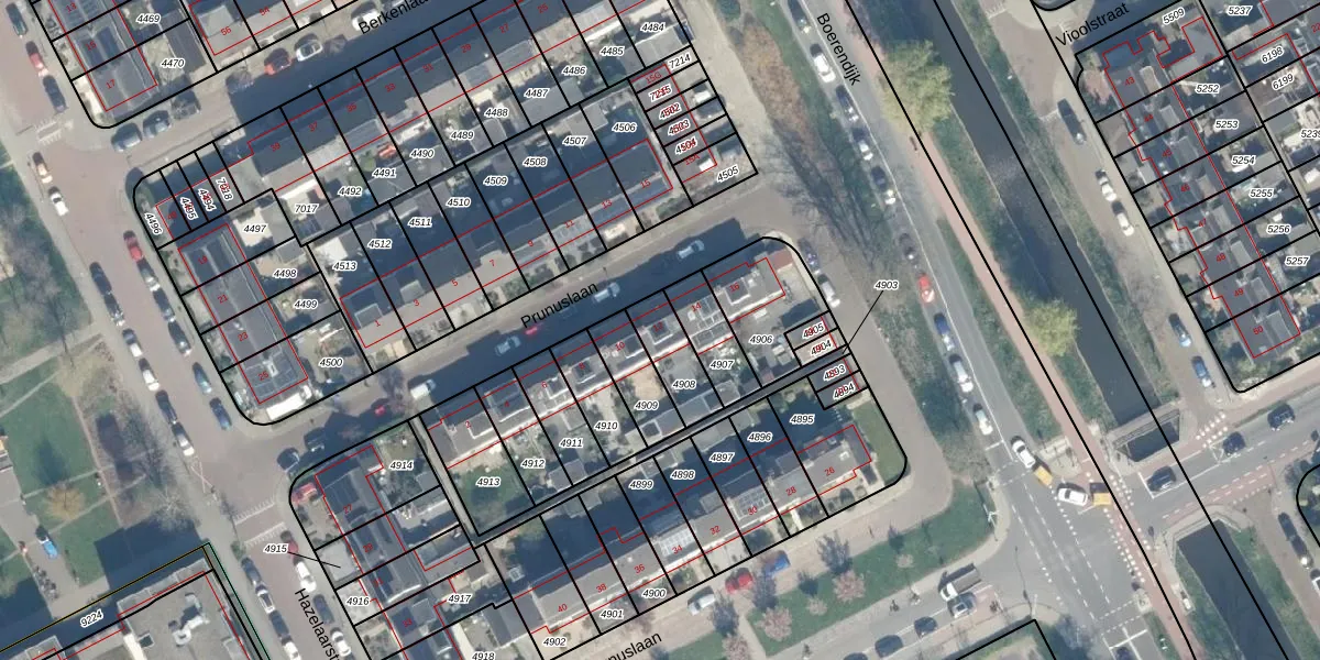 Prunuslaan 12 is gelegen op kadastraal perceel WDN01B4908. Deze kadastrale aanduiding is uniek en wordt gebruikt door het Kadaster om eigendomsrechten en andere zakelijke rechten vast te leggen. Het perceel maakt onderdeel uit van de kadastrale gemeente Woerden.