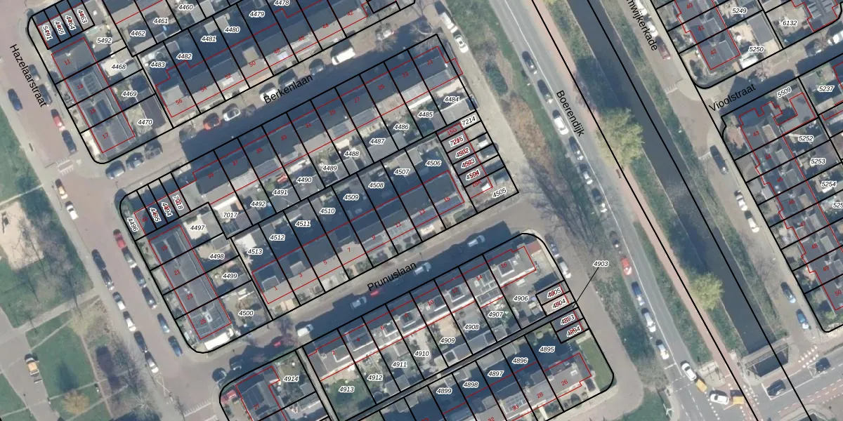 Gebruik de zoekbalk of klik op een perceel voor informatie over de adressen binnen dit perceel.