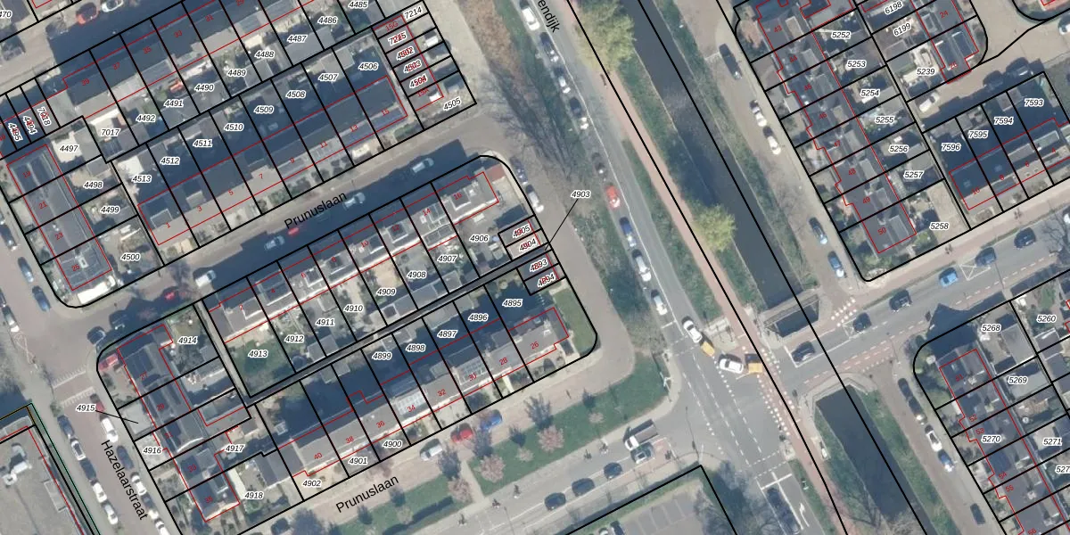 Prunuslaan 22 is gelegen op kadastraal perceel WDN01B4893. Deze kadastrale aanduiding is uniek en wordt gebruikt door het Kadaster om eigendomsrechten en andere zakelijke rechten vast te leggen. Het perceel maakt onderdeel uit van de kadastrale gemeente Woerden.